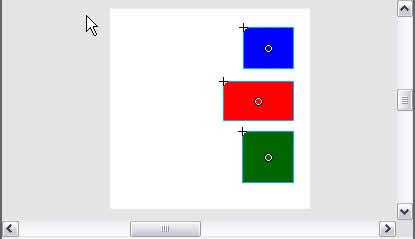 たとえば、オブジェクトが3つの場合は、ひとつは上端に、一つは下端に、もう一つは中央に移動します。